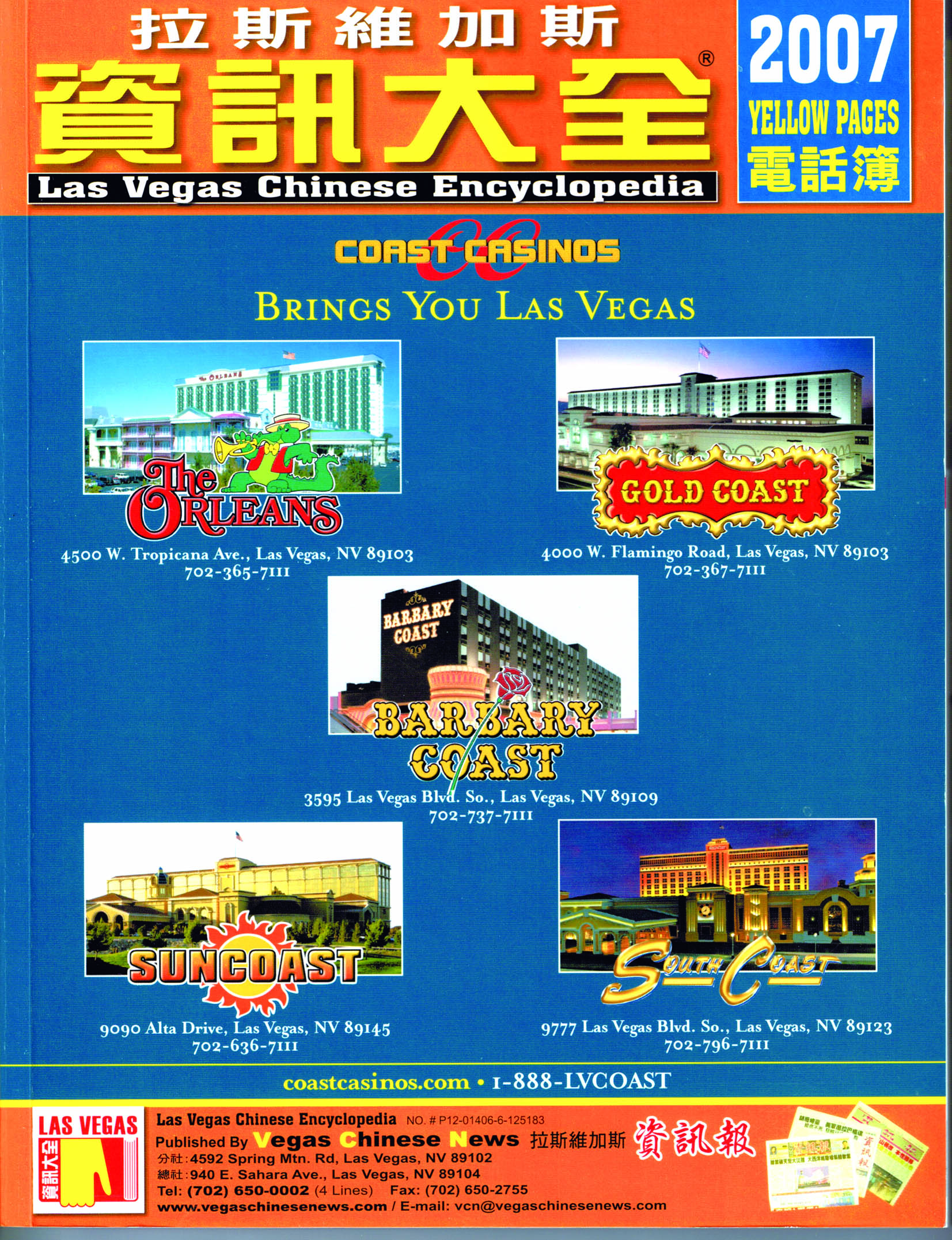 多年所学及深厚的经验积累再次派上了用场。我将书取名为《拉斯维加斯资讯大全》,除商家电话号码汇编之外,全书分为5编,比如第一编“让历史告诉未来”,我撰写了万字长文介绍拉斯维加斯历史变迁。当年读研究生养成的爱琢磨事的毛病这时显露出来了,我阅读研究了不少英文资料,从中总结出拉斯维加斯发展演变的几个阶段,以及特定人物在其中的作用及历史定位。这篇文章后来收获很多好评。我与学养深厚了陆老板一起为“数风云人物,开朗朗乾坤”章节,分别撰写了多篇文章,介绍拉斯维加斯历史上的英才怪杰。在第二编“千姿百态人生飨宴”里,我为吃喝玩乐的每一章节撰写了数千字引言,让读者一书在手即可资讯尽在掌握之中,玩遍拉斯维加斯无阻碍。第三编“万花筒里的人生”,我发动编辑部成员人人动手写文章,汇集各种赌城故事。在第四编“让生活变得更容易”、第五编“知识的天空如此多彩”中,有“公共资讯篇”“移民侨务篇”“教育文化篇”“医药保健篇”等等,与民众生活相关的各种资讯尽收其中。