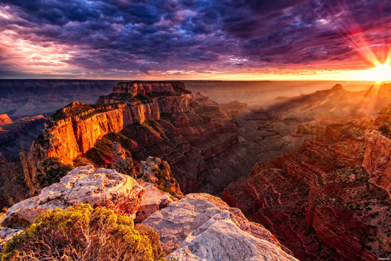 大峡谷国家公园号称是世界七大奇观之一,位于亚利桑那州西北与犹他州、内华达州交界处,由于有科罗拉多河穿流其中,将大峡谷分为北峰和南峰,故又称为科罗拉多大峡谷。峡谷呈东西走向,总长349公里,蜿蜒曲折,像一条桀骜不驯的巨蟒,匍伏于凯巴布高原上。峡谷宽度在6公里至25公里之间,最深处达1740米。如果您到过大峡谷,一定会为大峡谷的广袤无垠、古朴苍凉而惊叹。面对大峡谷,您将会深刻体会到人在自然面前的渺小和微不足道,慨叹生命的短暂和稍纵即逝,敬畏之心会油然而生。大峡谷是一个自然的大课堂,每位到此一游的身心健全的人都会受到一次前所未有的震撼教育,它让你懂得珍惜生命,好好思考如何度过短暂的人生。美国总统罗斯福1903年曾来此游览,面对大自然的鬼斧神工,他曾感叹地说道:“大峡谷使我充满了敬畏,它无可比拟,无法形容,在这辽阔的世界上绝无仅有。”