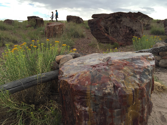 将近3米长的多彩巨木有个古怪的名字——“老忠实”。在接下来的一个观景平台上,放眼望去断成一截截的石化木铺陈在眼前。“长木堆小径”(Long Logs Trail)是一条环形道路,通往公园里最大的一片石化林集中地,在这里,一些石化木有30多米长,直径达一人多高的多彩玉化木也随处可见,地上到处是散布的晶莹玉化的石片……如果你有足够的想象力,眼前是会浮现出亿万年前森林的模样的。走笔至此,须提醒已蠢蠢欲动的看官,如欲赴石化林公园一游,千万不要打顺手牵羊的主意,无论是在访客中心,还是公园的宣传册上,都一再提醒着你这一点。当你漫步在已有亿万年生命的石化林间,你应怀着窥伺天界秘密的颤栗,以敬畏之心恳请上苍的照拂,这才是唯一的可行之道,